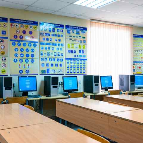 Обучение теории проходит в комфортных мультимедийных классах, а практика осваивается исключительно на технически исправленных авто, среди которых: Volkswagen Polo, Renault Logan, LADA Vesta 2018-2021 года выпуска.