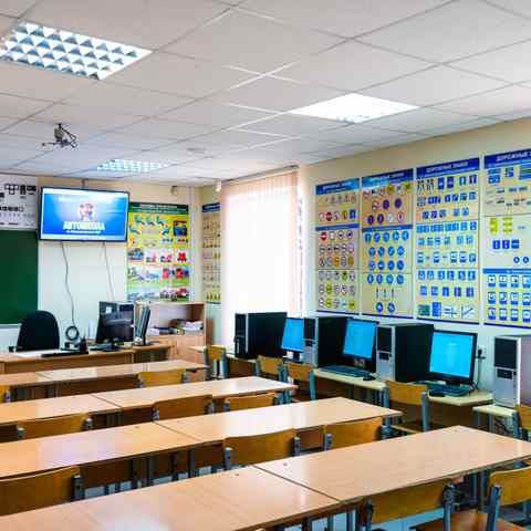 Обучение теории проходит в комфортных мультимедийных классах, а практика осваивается исключительно на технически исправленных авто, среди которых: Volkswagen Polo, Renault Logan, LADA Vesta 2018-2021 года выпуска.